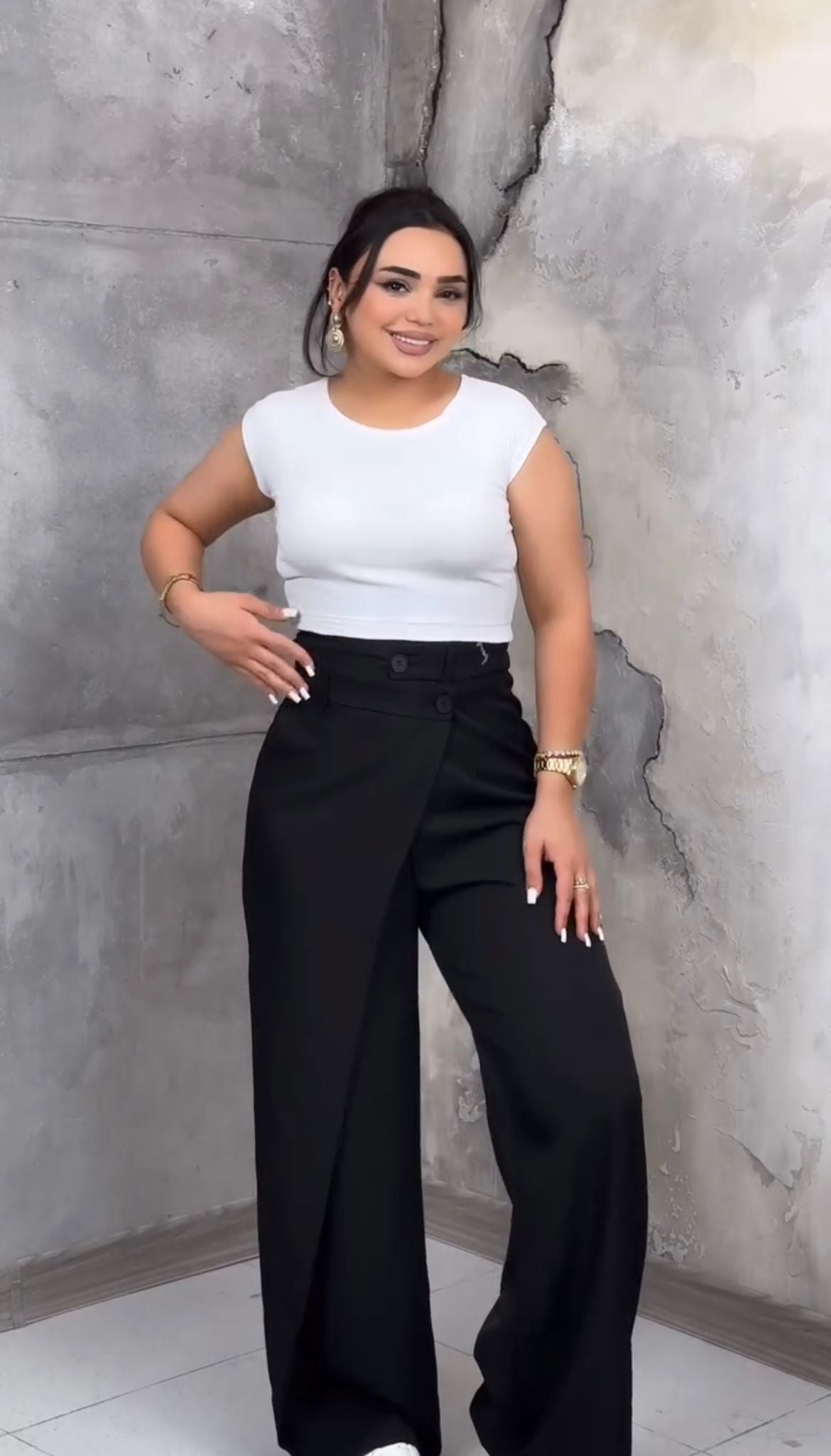 Szerokie spodnie z podwójnym pasem i asymetrycznym podwójnym zapięciem. Idealne na ubrania, które pozwolą Ci wyjść z anonimowości!