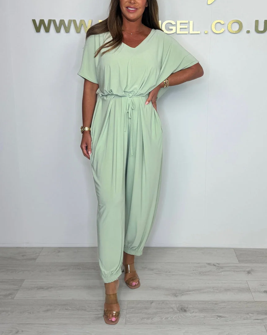 2025 Bawełniany kombinezon z dekoltem w serek i wiązaniem